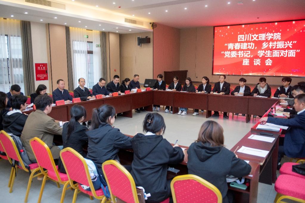 座谈会上,黄涛认真倾听了每一位师生的发言,充分肯定同学们渴望扎根乡村沃土、建功乡村振兴一线的热情与志向,并对他们未来的学业和人生规划提出了殷切期望。他说,乡村振兴是关乎全面建设社会主义现代化国家全局的重大历史任务,服务乡村振兴是时代赋予高校和青年大学生的光荣使命。希望同学们要筑牢信仰之基,胸怀“国之大者”,自觉从川陕革命老区的红色基因中汲取精神养分,厚植“知乡爱乡为乡”的深厚情怀,主动将个人成长的“小目标”融入国家发展的“大蓝图”。要锤炼过硬本领,努力学习专业知识,踊跃投身“第二课堂”与社会实践,不断提升解决实际问题的能力,夯实扎根基层、服务乡村的底气与根基。要增强使命担当,树立正确的职业观、事业观,自觉传承艰苦奋斗的优良传统,大力弘扬“塔石精神”,用智慧和汗水为描绘巴蜀大地乡村全面振兴的壮美画卷贡献青春力量。