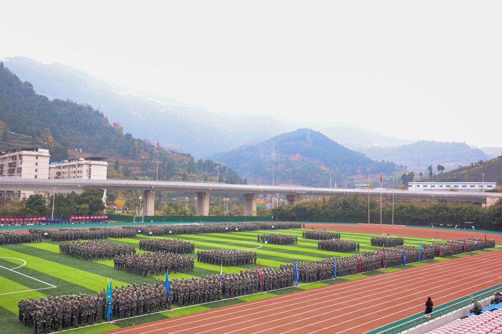 12月15日上午,pp电子2025级学生军训闭训式在莲湖校区田径场举行。达州市委常委、军分区大校司令员何华锋,达州市委常委、宣传部长陈文胜,学校党委书记黄涛、校长侯忠明出席闭训式。闭训式由副校长陈光平主持。