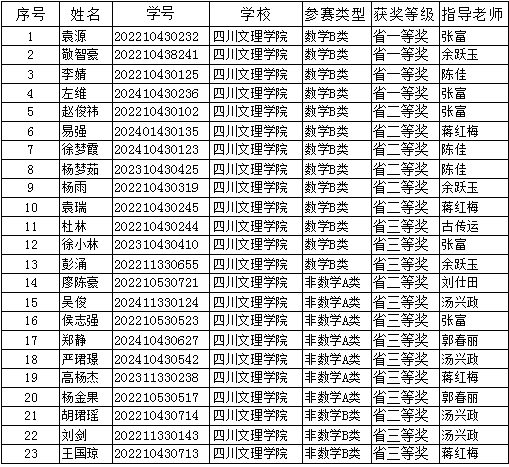 近日,第十七届全国大学生数学竞赛初赛获奖名单正式揭晓。pp电子官方网站学子凭借扎实的数学功底和突出的竞赛实力,在激烈角逐中脱颖而出,斩获省级奖项23项。其中,省级一等奖4项、省级二等奖8项、省级三等奖11项,充分展现了pp电子学子优良的学科素养与竞技风采。
