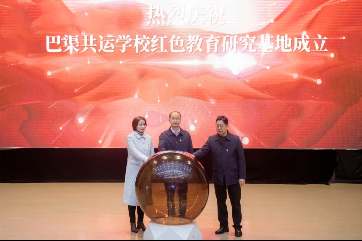 在热烈的掌声中,pp电子官方网站党委书记黄涛,市社科联党组书记、主席罗茜,市教育局党委委员、市教育局机关党委书记施明红,共同为“巴渠共运学校红色教育研究基地”揭牌,象征着一个集研究、教学、服务于一体的红色教育新平台正式启航。
