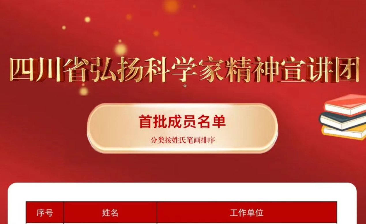 首批成员名单公布!四川省弘扬科学家精神宣讲团来了 https://mp.weixin.qq.com/s/elQQtr0XMwDyVtClTLHsVQ