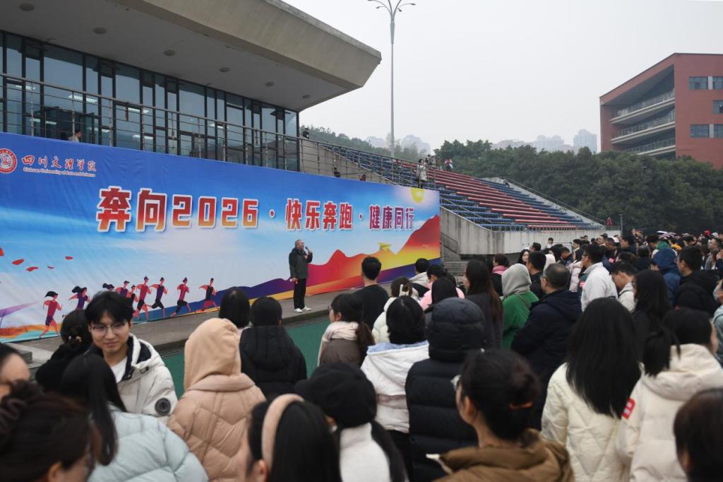细雨添奇趣,活力满校园。2025年12月30日下午,莲湖校区田径场热闹非凡,由校工会主办,各分工会参与,校体育运动委员会、宣传部、团委、保卫处、后勤服务处等多部门协办的“奔向2026・快乐奔跑・健康同行”校园欢乐跑活动圆满举行。学校党委副书记、工会主席徐晓宗宣布活动开幕,全校近900名教职工会员参加。
