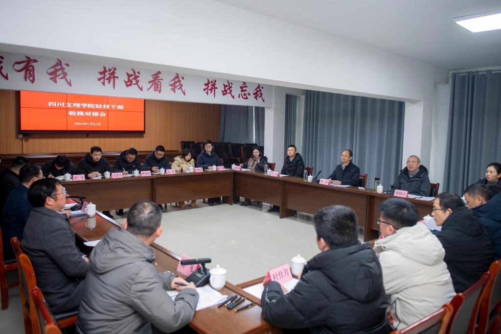 根据上级有关文件要求,新一轮驻村干部即将到任,徐晓宗向万源市委介绍新一轮5名驻村干部的基本特点,一是政治素质高,均为中共党员;二是专业匹配强,精准对接万源产业需求;三是队伍结构优,兼顾经验与活力,体现了“万源所需”与“文理所能”的精准对接。即将离任的杉林湾村第一书记、校党委组织部副部长、统战部副部长杨凡从“整合资源、实施项目、初见成效”三方面汇报了驻村工作。新任驻村干部代表、财经管理学院副书记徐宝磊作表态发言并作出四点承诺:一要加强学习,把握政策要求;二要扎根基层,做群众的贴心人;三要聚焦重点,推动任务落地;四是严守纪律,展现良好形象。
