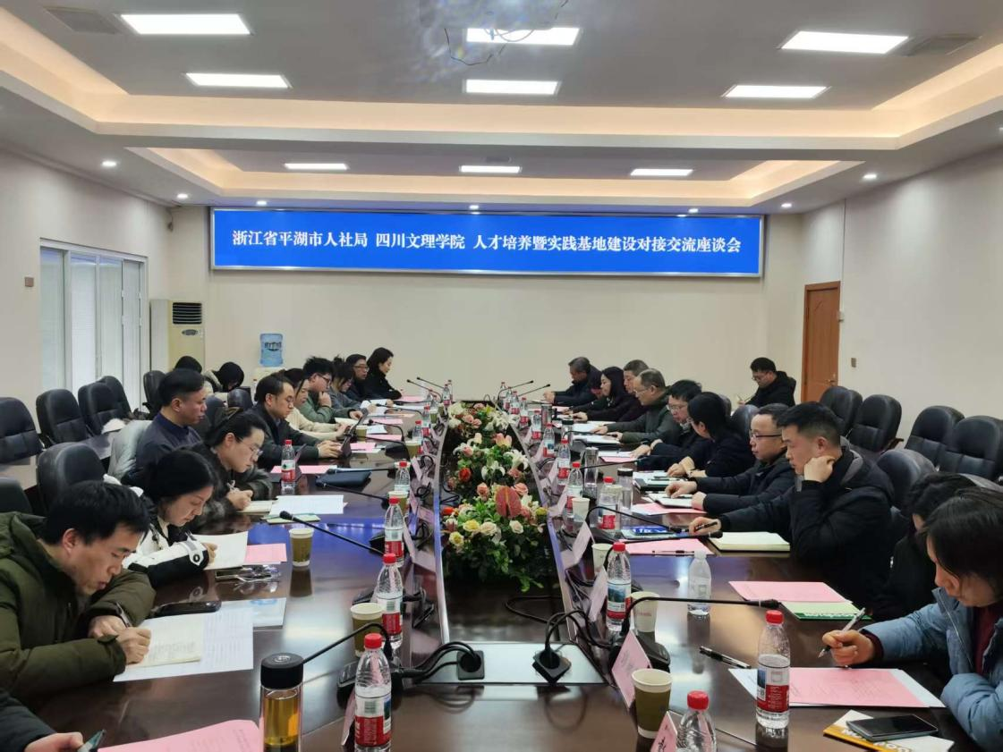 1月22日下午,pp电子官方网站与浙江省平湖市人力资源和社会保障局人才培养暨实践基地建设对接交流座谈会举行。平湖市人社局党委书记、局长朱磊,校长侯忠明,副校长熊兴中、陈光平出席会议,副校长程碧英主持会议。