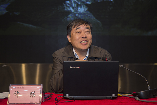 许结教授作《区域视野与巴文学的思考》报告,他从区域文化的视野看巴文学,认为巴文学与楚、蜀、秦都相互影响,同时围绕巴渝舞的文学书写,把文献碎片联系起来,探究文化的发展与变迁,最后提出巴文学的五个历史节点:“秦汉”“唐宋”“五四”“抗战””八十年代”。