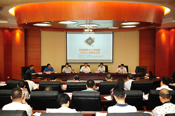 会上,招生就业处负责人通报2017年招生情况,学生工作部(处)负责人就2017年迎新及入学教育工作安排作了说明。