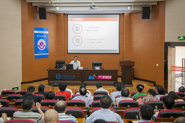 讲座伊始,王成端对四川省第十一次党代会作简要介绍。大会全面总结了过去五年的奋斗历程和重大成就,深刻阐述了事关四川未来发展的若干重大问题,科学回答了如何推动治蜀兴川再上新台阶的时代命题,体现了强烈的政治性、战略性、时代性、人民性和实践性,是指导当前和今后一个时期治蜀兴川各项事业发展的行动纲领。