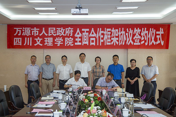 万源市委宣传部、教科局、旅游局负责人与学校部分职能部门负责人、二级学院院长出席签约仪式。