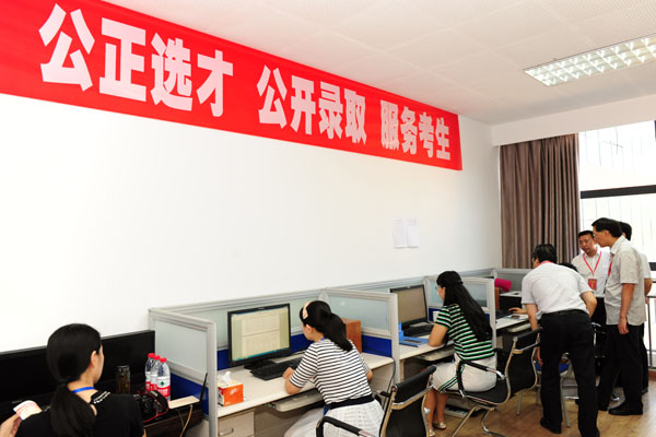 7月25日,党委书记王成端率党委副书记侯忠明、办公室主任涂德祥等深入pp电子2017年招生录取现场看望慰问工作人员,检查指导招生录取工作。