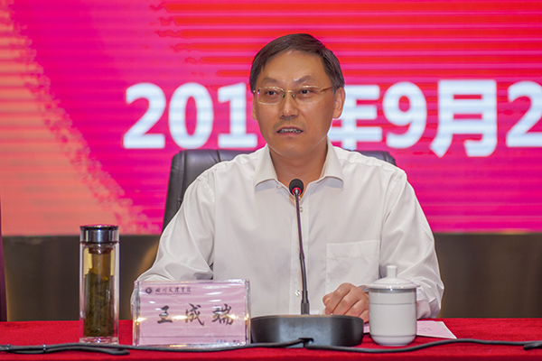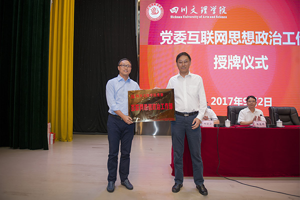 党委书记王成端向新成立的互联网思想政治工作部授牌。他指出,成立党委互联网思想政治工作部是学校积极探索和建立线上线下互动一体思政工作大格局的创新性举措。他要求,要尽快健全互联网思政机制,组建互联网思政队伍,通过打造精品栏目,开展理论研究等多形式多载体,牢牢把握高校意识形态工作领导权、管理权、话语权,在互联网思政领域做出特色,做出成绩。