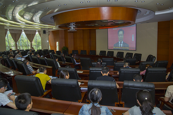 5月24日上午9时,四川省第十一次党代会在成都隆重召开,pp电子组织党员干部和学生党员代表集中收看实况直播,在家校领导侯忠明、徐晓宗到场收看。