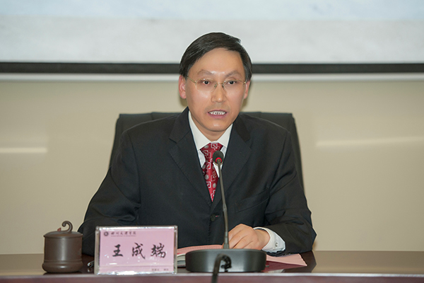 校长王成端作《强化档案意识 推进规范建设——努力提高档案为学校改革发展服务的能力和水平》讲话。他说档案工作会在档案工作面临“四个全面”战略布局、国家大数据发展战略和“互联网+”行动推进计划的新形势下,在省教育厅、省档案局对高校档案管理在理念、技术、方法及模式上提出新要求的重要时点背景下筹备召开,具有重要意义。他要求全校相关部门及档案工作者在工作中要凝聚共识,明确责任,不断强化档案意识;依法治档,规范管理,使档案馆成为支撑学校改革发展的资源中心;档案管理部门要加快推进信息化建设,加强安全防范,实现档案信息安全共享;同时,还要加强档案宣传,参与文化建设,展现档案文化魅力。他希望相关部门及档案工作人员要认真履行“为党管档、为校守史、为民服务”的职责,努力提高档案为学校改革发展服务的能力和水平,为学校建设作出新的贡献。