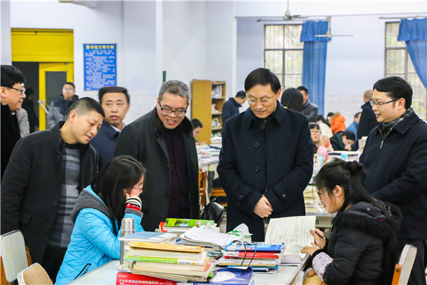 下午3:30,校长王成端、党委副书记侯忠明、副校长徐晓宗及相关职能部门人员和南坝校区二级学院党政负责人深入南坝校区学生运动场地、图书馆、学生宿舍、学生食堂、实验楼,实地走访、现场调研,并亲切看望了南坝校区备战考研的学生。