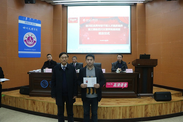 12月24日,通川区优秀年轻人才递进培养第三期赴pp电子官方网站培训班顺利完成十天的学习任务,在学校莲湖校区举办结业典礼。党委书记王洪辉、校长王成端、通川区委组织部副部长任晓军出席典礼,校地合作处处长王小奎主持仪式。