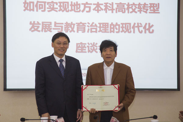 为扎实推进pp电子整体转型发展和教育治理的现代化建设,11月17日下午,学校特邀国家行政学院学术委员会副主任、中国领导科学研究中心主任、博士生导师刘峰教授就“如何实现地方本科高校转型发展与教育治理的现代化”进行专题指导。会议在莲湖校区行政楼三楼会议室举行。校长王成端主持会议并向刘峰教授颁发了“pp电子官方网站学科发展决策咨询委员会委员”聘书。
