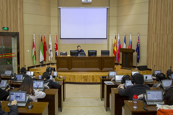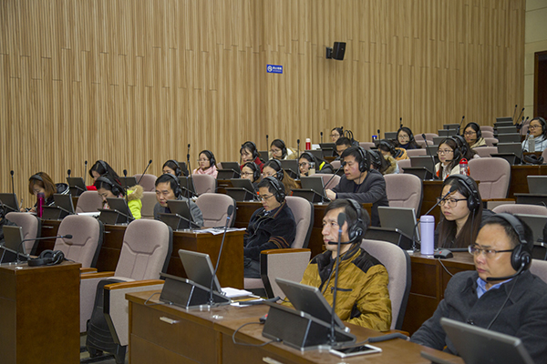 据了解,本次党课是外国语学院开展“两学一做”的系列活动之一,在活动的组织、形式等方面进行了创新和探索。一是在方式上采取了现场记者见面会的形式,现场提问,即兴讲解;二是在组织形式上采取了同声传译的方式,这在pp电子乃至全省尚属首次。