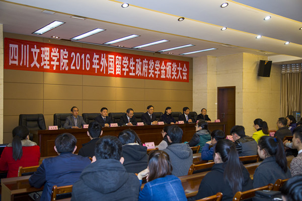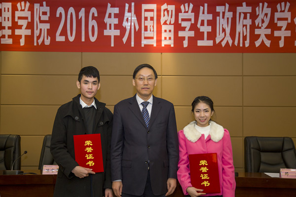 11月29日下午,学校在莲湖校区行政楼一楼会议室隆重举行四川省外国留学生政府奖学金颁奖大会,为2016年四川省外国留学生政府奖学金获得者苏龙和英提同学颁发奖学金及获奖证明书。