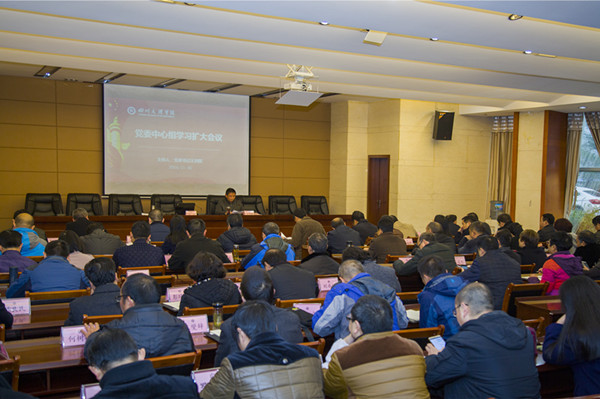 11月30日,学校在莲湖校区举行党委中心组扩大学习会,党委书记王洪辉领学《中国共产党党内监督条例》和《关于新形势下党内政治生活的若干准则》并讲话,党委副书记、纪委书记雷超作《党的十八届六中全会公报解读》和《推进全面从严治党巩固发展良好政治生态》专题宣讲。