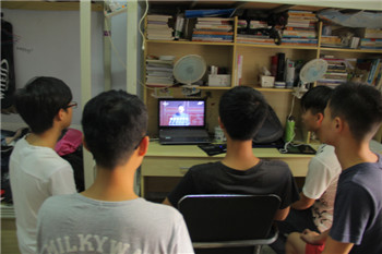 9月3日上午9点,纪念中国人民抗日战争暨世界反法西斯战争胜利70周年大会在北京隆重举行,pp电子积极组织师生集中收看中央电视台的电视直播。学校开放了莲湖校区、南坝校区多媒体教室、音乐厅、行政楼会议室、图书楼学术报告厅、学生食堂等50多个收看点,确保全校近万名师生集中收看。