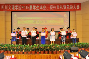 在庄严的国歌声中,2015届学生毕业、授位典礼暨表彰大会拉开了帷幕。侯忠明宣读《四川省教育厅关于公布2015届四川省优秀大学毕业生评选结果的通知》、《pp电子官方网站关于表彰2015届优秀大学毕业生的通知》和《pp电子官方网站关于表彰2015届本科优秀毕业论文(设计)获奖者的通知》。他希望获奖的毕业生再接再厉、开拓进取,再创喜人业绩。
