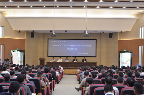 4月27日上午,达州市村(社区)党组织书记示范培训班开班仪式在莲湖校区学术报告厅隆重举行,达州市委组织部副部长刘涛、学校党委书记李万斌、校长孟兆怀、达州职业技术学院党委书记杨大荣出席。开班仪式由市委组织部机关党委书记朱宏尚主持。