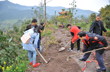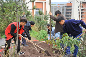 3月24日上午,数学与财经学院20名老挝留学生与学校领导共同在学校凤翔山顶植下了一片象征两国友谊的“友谊林”。