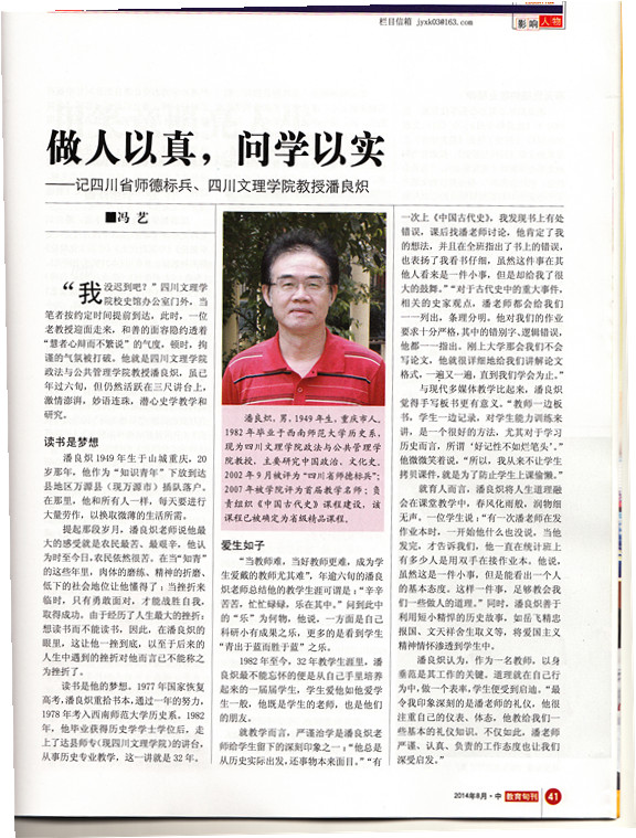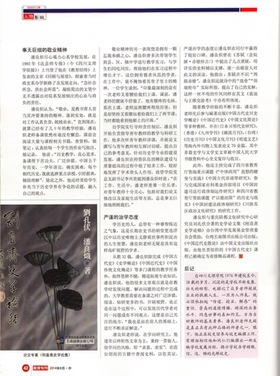 从教32载,潘良炽老师除完成《中国古代史》、《史学概论》、《中国近代史》、《中国传统文化概论》等多门课程的教学任务外,始终笔耕不辍,精进拓展专业知识。潘良炽老师说,他的很多文章(及观点)就是在教学时发现问题、解决问题的过程中完成的。大学教育需要在备课之时广泛涉猎,阅读、钻研更多的书,开阔视野。也正是在这个过程中,可以发现历代学者对同一问题或有不同观点,这便是自己关注的地方,“我也是站在前人的基础上,进行不断求证解读。”