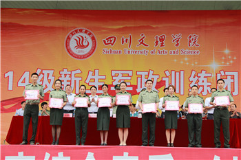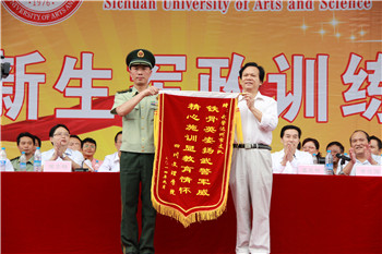 9月19日上午,pp电子2014级新生军政训练闭训式在莲湖校区运动场隆重举行。党委书记李万斌代表学校向武警达州市支队赠送锦旗并感谢支队官兵的辛勤付出,校长孟兆怀讲话,党委副书记侯忠明主持闭训式。 随着激昂的进行曲响起,45个参训方队迈着整齐矫健的步伐,喊着响亮的口号,精神抖擞地通过主席台接受检阅,充分展示了2014级新生军训成果和朝气蓬勃的良好精神面貌。分列式表演结束后,承训教官表演了擒敌拳,他们虎虎生威的动作、敏捷矫健的身手,赢得了现场师生的阵阵喝彩。 党委副书记李佳国宣读军训表彰决定。闭训式对文学与新闻学院等8个先进集体、包志国等9名先进个人以及谭程莲等301名优秀学员进行了表彰。 孟兆怀代表学校党委和行政向武警达州市支队全体官兵表示崇高的敬意和衷心的感谢,向顺利通过军训考验的2014级新同学表示热烈的祝贺,向各位教导员、指导员老师表示亲切的慰问。他说,军训期间,全体承训教官充分发扬了武警官兵吃苦耐劳、雷厉风行、连续作战的优良作风,严格按照学校的训练计划和要求,尽职尽责,科学施训,出色地完成了军训任务。全体参训学员通过为期近10天的军训,不仅强健了体魄,提高了身体素质,同时也经历了一场思想觉悟、纪律作风和意志品质的洗礼,取得了明显进步。他希望同学们把军训养成的优良作风和宝贵品质带到今后的大学生活中,努力学习,勤奋上进,勇攀高峰,追求卓越,成为博学多才的智者,成为坚定顽强的勇者,成为智勇双全的强者,为实现中华民族伟大复兴的中国梦做出自己应有的贡献。 军政训练组织实施单位、学生工作部(处)负责人陈官章从军训的前期准备、组织实施,以及学员的参训情况和取得的成果作工作汇报。 最后,整个闭训式在全场师生齐唱《歌唱祖国》中圆满结束。 武警达州市支队副参谋长张礼波中校,副校长李壮成、徐晓宗及相关职能部门负责人、各二级学院党总支书记出席闭训式。