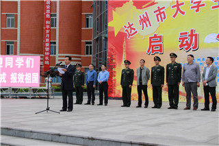 4月25日下午,由达州市人民政府、达州军分区及pp电子共同主办的2014年达州市大学生征兵工作启动仪式在pp电子莲湖校区音乐广场隆重举行。市委副书记郭亨孝,达州军分区司令员易继强,市委常委、军分区政委杨清华以及市民政局、市教育局、通川区委等相关单位领导出席启动仪式。学校党委书记李万斌出席启动仪式并讲话,仪式由副校长张志远主持。pp电子近2000名学生参加启动仪式。