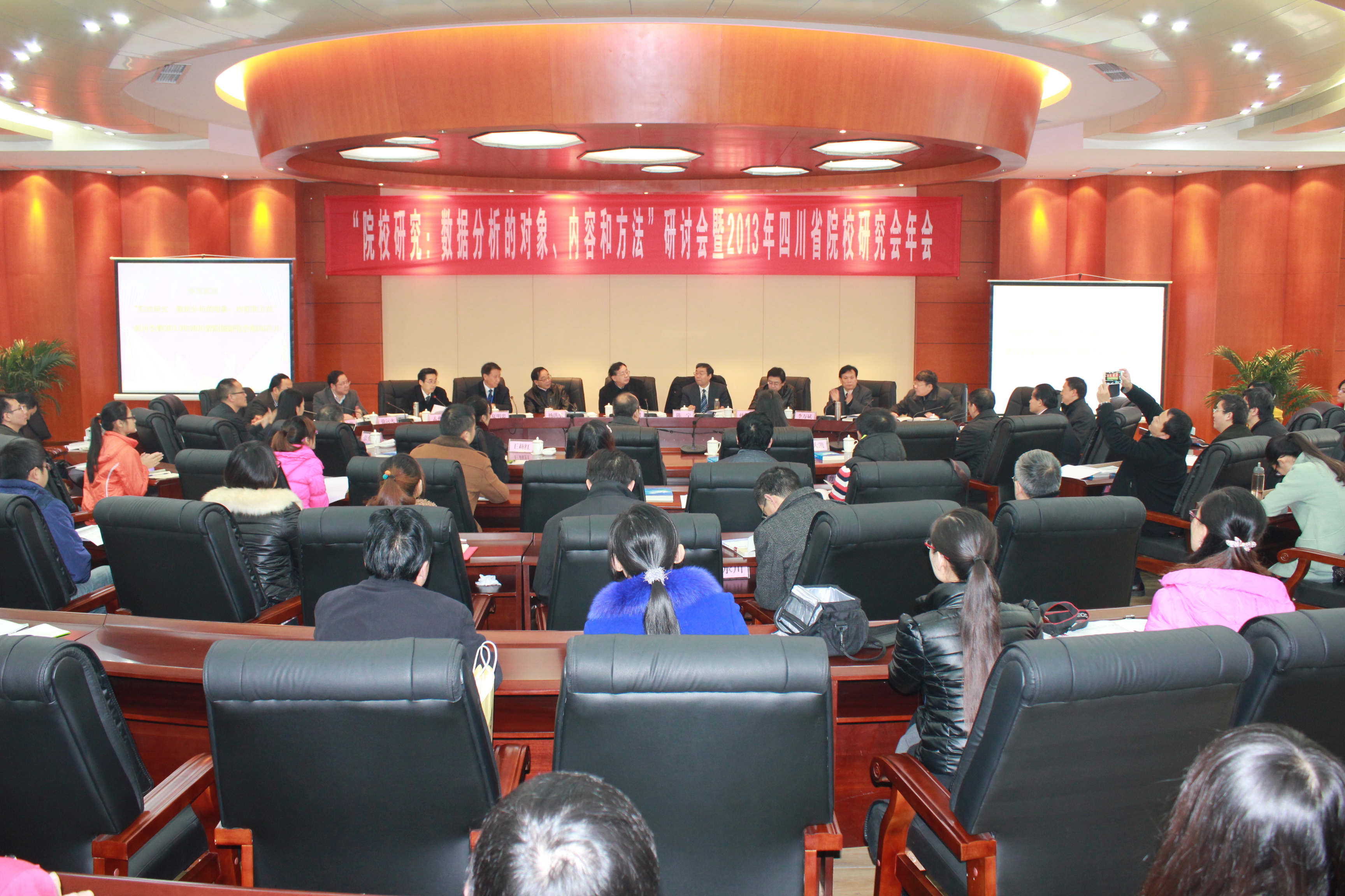 12月6日上午,“院校研究:数据分析的对象、内容和方法”研讨会暨2013年四川省院校研究会年会在莲湖校区召开,来自省内外21所高校、研究中心的70余名代表参加此次会议。四川省高等教育学会秘书长杨洪东,中国院校研究会会长、华中科技大学刘献君教授,中国院校研究会副会长、四川省高等院校研究会理事长陈宁,中共达州市委副秘书长孙黎龙,pp电子官方网站党委书记李万斌,副校长王洪辉、李壮成应邀出席此次会议。会议由开幕式和学术交流两部分组成,开幕式由校长孟兆怀主持。 开幕式现场,李万斌教授代表学校党委、行政向参会人员致欢迎辞,简要介绍pp电子办学历程及理念。刘献君教授发表讲话,他总结了2008年以来中国院校研究会研究成果并指出当大力发展院校研究,着重思考院校发展如何将技术与教育相结合。 杨洪东秘书长就四川省高等教育研究会自成立以来的研究特色作简要介绍,他说,四川省高等教育研究会虽成立时间短,但已经初步形成研究特色,办会方向明确、自身建设不断完善、学术研究合理、成果不断涌现。同时,杨洪东提出要将十八届三中全会精神与院校研究相结合,要充分认识十八届三中全会的伟大历史意义。教育是群众最关心、最直接、最现实的问题,作为教育工作者,要充分理解教育的战略地位,紧随中央“全面深化改革”方针,研究会将在今后的研究、实施、管理上以此核心为基础,推动发展、提高研究水平,促进研究队伍建设,发挥协会自身作用,为教育发展当好参谋。 陈宁教授总结了四川省高等院校研究会自2010年成立以来的工作经验和取得的成果,并针对此次会议主题指出数据资源对于决策领导层的重要性,他说,“作为高校领导,要决策,就必须掌握大量的数据信息。” “一个大规模生产、分享和应用数据的时代正在开启。”在学术交流上,来自中国院校研究会副秘书长、华中科技大学教育科学研究院副教授张俊超博士作题为《大数据时代的院校研究与大学管理》报告上如是说。张俊超博士从“BIG DATA”的定义和特征为切入点,运用大量实例进一步阐明我们在大数据时代背景下该如何转变思维方式,从而推导出作为院校研究应当怎样利用数据资源来为院校服务的可行性方案,即建立统一的数据库、将“不可测量”之物分解为可量化之物、善于从数据中发现问题、寻找资源并将数据进行重组和扩展等方法。 学术交流部分,由西昌学院院长、四川省院校研究会副理事长夏明忠教授主持,会上,来自西南科技大学高教研究与评估中心主任谢鸿全博士、西华师范大学教育学院副教授文少保博士、成都师范学院教师专业发展研究培训中心主任、中国院校研究会理事郭平博士等学者纷纷围绕大会主题发言。 当日下午,音乐楼演播厅,刘献君教授作题为《大众化背景下的大学课程建设》专题学术报告,报告会由李万斌教授主持。在报告中,刘献君教授针对大众化背景下的大学课程建设指出,课程建设要转变教学观念、形成符合教育教学规律,要适应新形势的教学观念、思维方式,形成开放互动、具有文化根脉的教学,其突破口当从改进教学方法为切入点,通过激发学生兴趣、促进思考、督促鞭策来达到改进目的。就改革教学评价这一环节,他强调,应当以学生的成长、发展为评价的主要内容,采用发展性评价、改革考试制度、利用“大数据”等多维度测评方式来实现对学生更合理的评价。 刘献君教授生动丰富的讲解赢得了现场教师阵阵掌声,其渊博而深邃的学术造诣给在座人员留下了深刻印象。