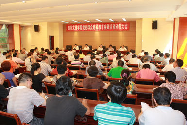 7月12日,根据省委的统一安排和部署,学校在莲湖校区召开党的群众路线教育实践活动动员大会。省委教育实践活动第十五督导组组长熊树林同志出席会议并讲话,党委书记、学校教育实践活动领导小组组长李万斌同志作动员报告,校长孟兆怀同志主持会议。省委第十五督导组副组长、省教育厅巡视员周光富及督导组成员和学校其他党政领导、中层干部参加会议。