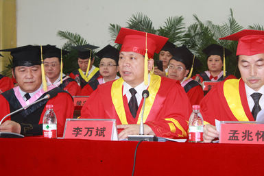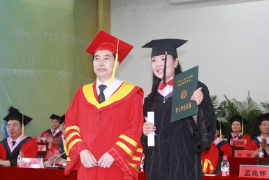 校长孟兆怀教授为毕业生授位 毕业生与孟校长合影