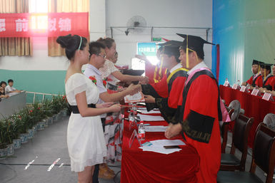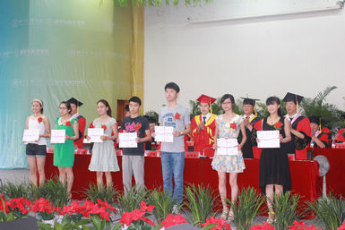 校领导为毕业生颁奖 优秀毕业生代表上台领奖