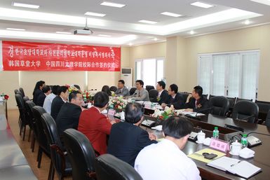 李承柱简要介绍了草堂大学的基本情况、发展历程、办学理念、在校学生和师资情况。他说,自2011年,两校开始合作交流以来,双方取得了较好的成绩,希望双方今后的交流合作能更加深入、更加宽广。