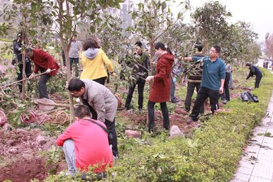 3月14日下午,党委书记李万斌、校长孟兆怀、党委副书记李佳国、副校长张志远、副校长王洪辉、副校级调研员成良臣及机关职能部门教师一起在正在修建的传媒艺术大楼前的空地栽种树木,共同绿化美化校园。 参与栽种树木的老师在专业技术人员和基建处同志的指导下,两个或三个相互配合,或浇水、或覆土、或辅助,大家干的饶有兴致,并相互交流栽种技巧和劳动体会。一个小时左右,在吉祥路的旁边就有两排新栽种的80多棵桂花树矗立在那里,一眼望过去,一道绿色的风景线煞是惹眼。