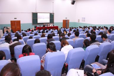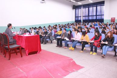 3月21日,党的十八大精神省委宣讲团“走基层”高校分团第三组走进pp电子,为pp电子师生作精彩的十八大精神宣讲报告。党委书记李万斌教授出席并聆听报告,党委委员、宣传部部长徐晓宗教授主持报告会。