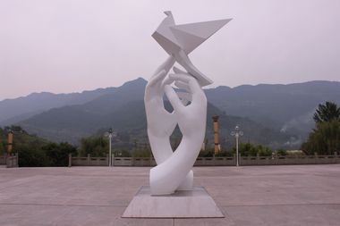 《明天》 以两只青年男女放飞纸鸽的手造型设计,寓意对未来的憧憬,校园就犹如梦开始的地方,青年学子们在这里学习知识,聚集能量,当丰羽之后,离开校园之时,正是放飞的时候。同时也寓意学校对青年人所付出的劳作,老师们的培养与呵护,共同托起青年人的梦想与未来。