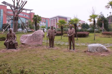 图书大楼前人物头像雕塑选用了享誉中外的四位科学家、艺术家、教育家的头像作为创作原型,他们分别是世界著名物理学家爱因斯坦、欧洲文艺复兴时期杰出艺术家达.芬奇、中国杰出科学家钱学森、中国著名教育家陶行知,他们在各自的领域作出了非凡的贡献。