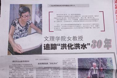 这场被有关专家鉴定为发生在清朝年间,比近300年内任何一场洪水均高出20至80米的“洪化罕见特大洪水”倾注了她一辈子的心血。成了她终身都在追寻一个又一个的答案:这场罕见的特大洪水到底是否存在?如果存在,它究竟有多大?对现在我们预防特大洪水的发生有何意义?