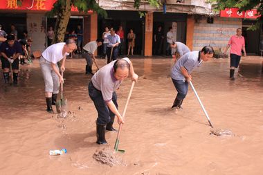 受连日来的强降雨影响,达州多地遭受洪涝灾害。5日凌晨,达城州河洪峰到达最高值,水位超过滨河路面3米左右,临河门市全部被水淹没。为响应市委、市政府号召,我院中层干部在党委副书记李佳国的带领下,赴滨河路与全市机关各部门同志一道参加清淤工作。