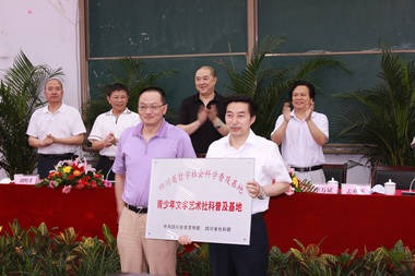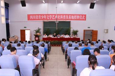 6月14日下午,四川省社科联普及部副部长焦渡在学院莲湖校区宣读《关于认定“四川省哲学社会科学普及基地”的通知》,根据通知内容,认定我院为“四川省青少年文学艺术社科普及基地”,省社科联党组副书记罗仲平为学院授牌,副院长王洪辉主持授牌仪式。
