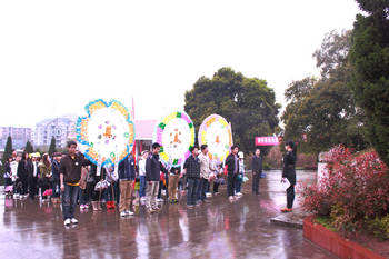 在陵园管理工作者的支持下,扫墓师生在革命英雄纪念碑前奏唱了《国际歌》,向革命先烈敬献花圈和小百花并进行了集体默哀。宣传部姜仕华老师向全体同学强调了祭扫革命烈士陵园的意义,并希望大家弘扬革命精神,秉承先烈遗志,刻苦学习,报效祖国。最后,全体师生面对革命英雄纪念碑,庄严肃立,集体宣誓“秉承博文大理,厚德笃行的校训,继承革命优良传统,争做社会主义事业的接班人”。仪式结束后,师生们在陵园瞻仰了革命先烈,参观了陵园陈列馆并对园区进行了清扫。