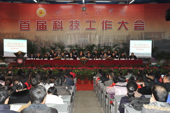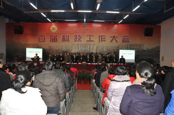 党委书记李万斌教授致开幕词。李书记指出,此次会议是在全院深入学习十七届五中全会精神,积极开展创先争优活动,奋力推动学院更好更快发展的重要时期召开的。我们应该全面贯彻党的十七大和十七届五中全会精神,认真学习贯彻《中长期科技发展规划纲要》、《中长期教育改革国家规划纲要》和《中长期人才发展规划纲要》文件精神,坚持科学发展观,紧紧围绕地方经济社会发展需要和高校科技创新工作要求,总结升本以来我院科技工作的新成绩,分析查找存在的问题。应该以建设特色鲜明的新型本科院校为目标,紧密联系四川经济、社会发展等现实科技服务需要,进一步调动广大教师、科技工作者的积极性和创造性,加强学术团队和科技骨干带头人的培养,振奋精神,与时俱进,开拓创新,不断推动学科建设和特色重点科研领域的形成和发展,积极提升学院创新人才培养、服务经济文化建设和社会发展的能力,开创我院科技工作的新局面。