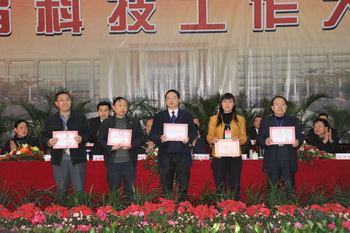 党委副书记李佳国教授宣读《对省部级以上科研项目及获奖成果给予表彰的决定》(川文理[2010]103号)并为获得这些项目、成果的负责人或课题组代表颁奖。