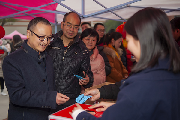 当天下午,教职工携老扶幼早早来到音乐广场,聚在一起有说有笑,广场上“新年好”的音乐声响彻云霄。广场一侧,工会会员卡服务点排起长龙抽取幸运奖品;另一侧,工会常务副主席郑长江领着后勤工作人员煮起了热腾腾的汤圆,工会主席侯忠明为坐在轮椅上不方便排队的老师送上甜滋滋的汤圆。抽取幸运号码开始后,工会会员一边吃着美味的汤圆一边等待摇奖,大家的心里既乐开了花又充满了期待。