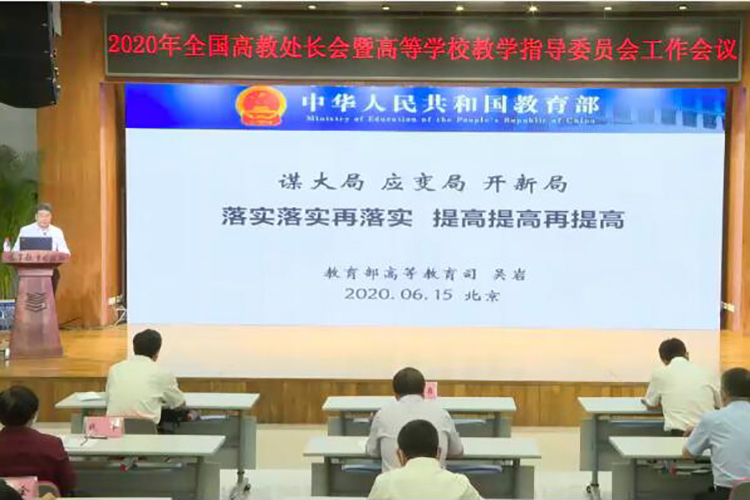 会上,教育部高教司司长吴岩作以《谋大局 应变局 开新局——落实落实再落实 提高提高再提高》为主题的主旨报告。他指出,2019年,全国高等教育战线深入贯彻落实习近平总书记给全国涉农高校的书记校长和专家代表回信精神,大力推进新农科、新文科、新工科、新医科“四新”建设以及“六卓越一拔尖计划”2.0、一流专业“双万计划”、“互联网+”大学生创新创业大赛等各项工作。首批推出4054个一流本科专业建设点,实现省域、学科、专业类“三个全覆盖”,辐射引领全国高校专业建设水平整体提升和人才培育质量全面提升。抗击疫情以来,各地各高校组织开展大规模在线教学,实现停课不停教、停课不停学,交出了一份有温度、有技术的答卷。