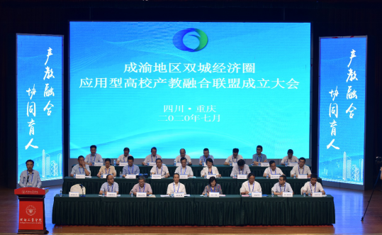 成渝地区双城经济圈应用型高校产教融合联盟成立大会于近日在成都工业学院、重庆科技学院双会场同步召开。四川省教育厅一级巡视员胡卫锋、高教处处长陈小红,重庆市教委副主任邓沁泉,以及成渝地区40所应用型本科高校、16家企业的代表出席成立大会。校长刁永锋应邀在成都工业学院会场出席成立大会。