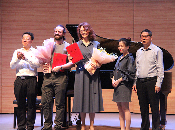 党委书记王成端、校长刁永锋为项目组颁发证书和奖金,党委副书记、工会主席侯忠明宣读《2019国家艺术基金立项通知书》。俄罗斯国立格林卡音乐学院专家鲁思南和叶莲娜作学术讲座。校长刁永锋为两位专家颁发客座教授聘书。副校长徐晓宗主持。