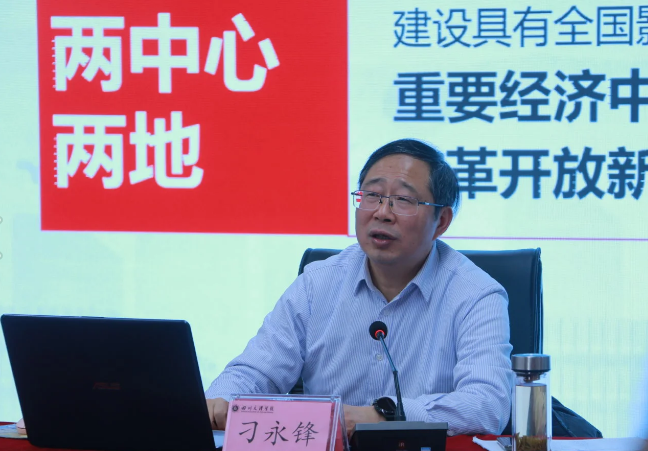 刁永锋以“成渝双城经济圈建设国家战略的提出、成渝双城经济圈建设国家战略的四川部署、成渝双城经济圈建设的重大意义、四川推动成渝地区双城经济圈建设的重大举措”四个方面,深入浅出地对成渝双城经济圈推动四川未来的发展进行了解读。
