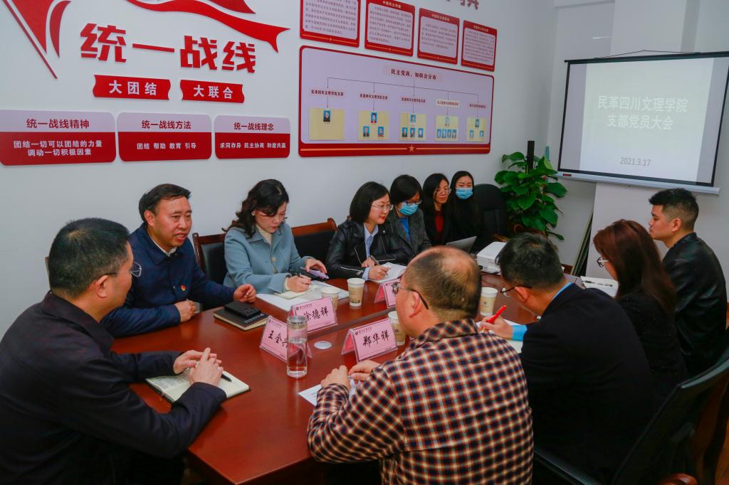3月17日,市人民政府副市长、民革达州市委主委王全兴到民革pp电子官方网站支部指导工作,并就组织建设、人才培养、活动开展等方面开展调研,学校党委副书记侯忠明、党委常委、党委统战部部长涂德祥陪同调研,民革达州市委会副主委郑华祥等参加调研。